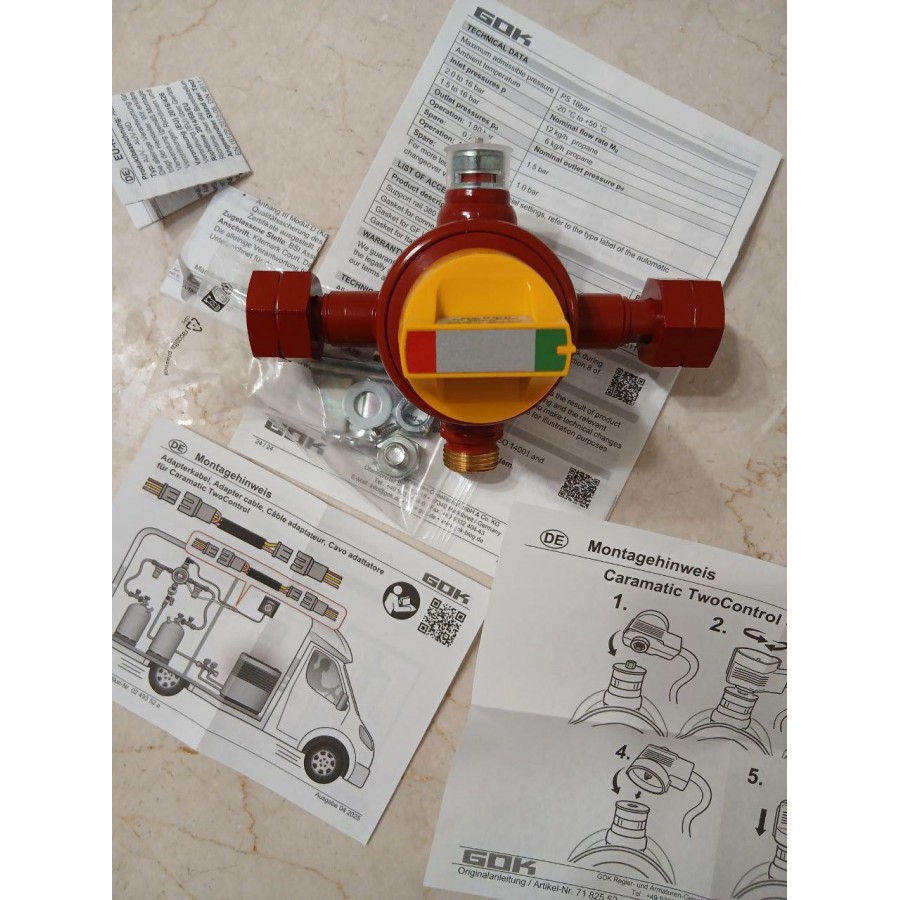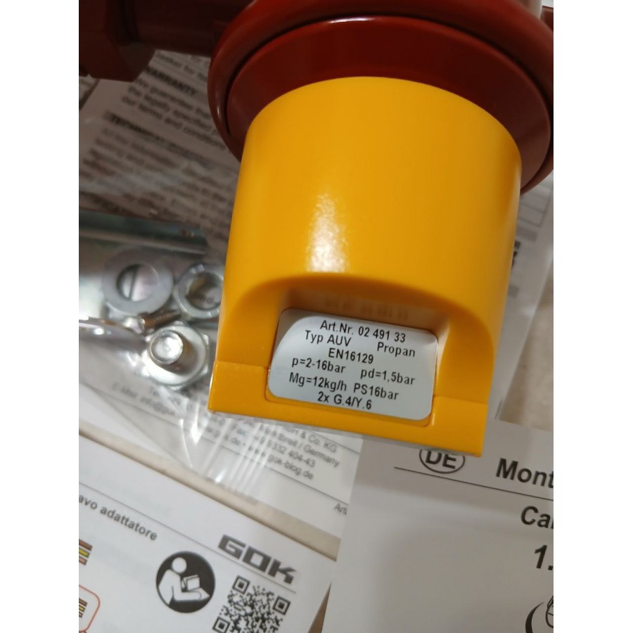 Устройство изготовлено немецкой компанией GOK и соответствует европейским стандартам безопасности. Клапан имеет сертификацию EG в соответствии с требованиями GGR, что подтверждает его надежность и пригодность для использования в профессиональных и бытовых газовых системах. Качественные материалы и точная механика гарантируют стабильную работу даже при длительной эксплуатации.