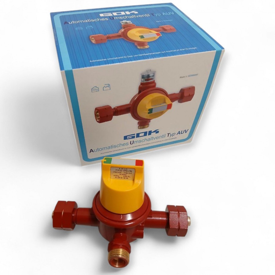 Автоматический переключающий клапан GOK для баллонных установок AUV с пропускной способностью до 12 кг/ч предназначен для непрерывной и безопасной подачи сжиженного газа в системах автономного газоснабжения. Устройство автоматически переключает подачу газа с рабочей группы баллонов на резервную в момент опустошения основных баллонов, что позволяет избежать остановки газопотребляющего оборудования и не требует ручного вмешательства пользователя.