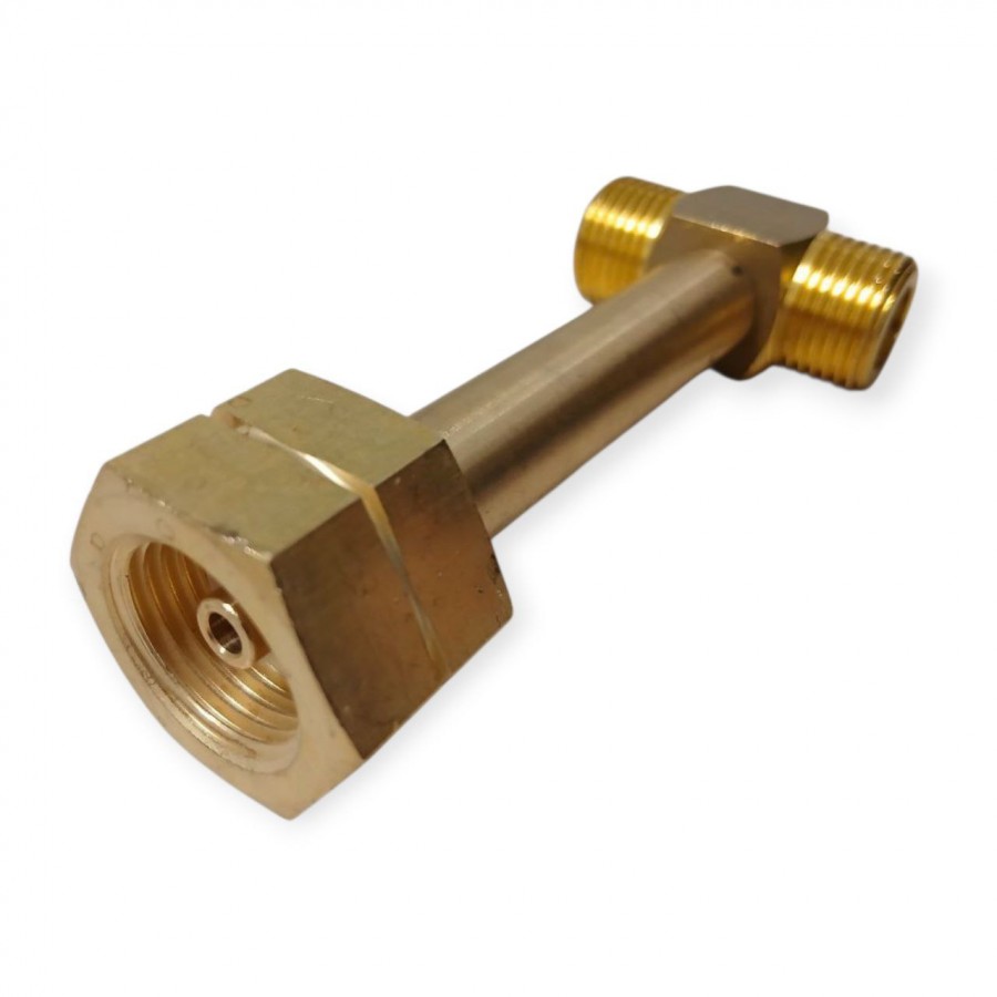 За счет длины более удобен (в сравнении с обычным тройником) при подключении композитных газовых баллонов.